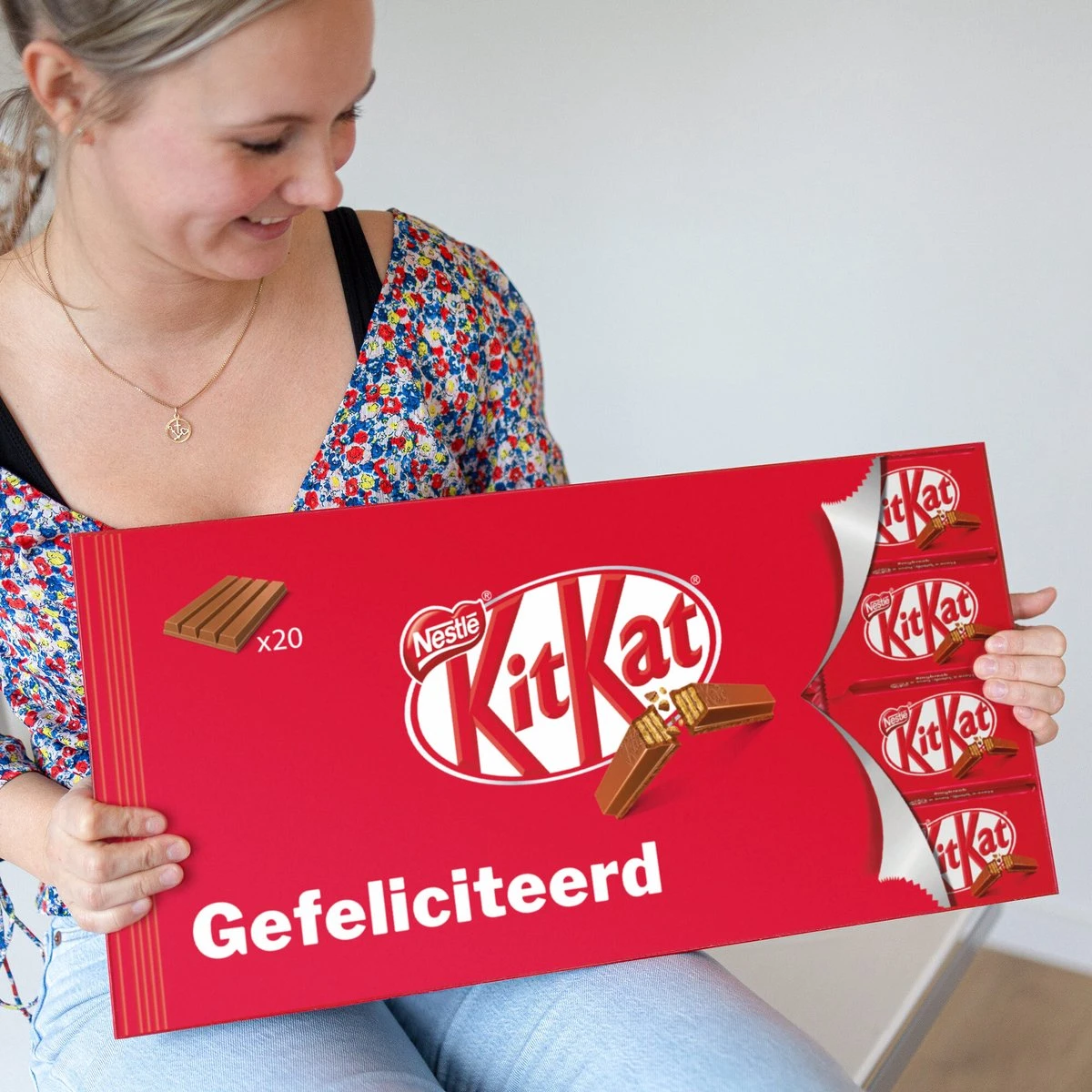 Heeft je broer eindelijk zijn rijbewijs gehaald en wil je hem feliciteren met zijn verjaardag? Of ben jij reuze trots op je collega’s, omdat zij die belangrijke presentatie tot een goed einde hebben gebracht? Dan is deze Giant KitKat reep het perfecte cadeau! De ontvanger zal weten hoe MEGA blij je met hem of haar bent! De supergrote KitKat reep kun je natuurlijk ook voor jezelf bestellen, want hij is ook perfect om te delen met je familie, vrienden of wie jij maar wilt.