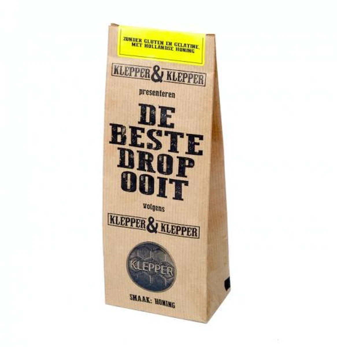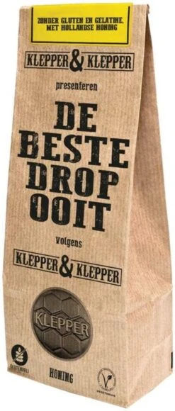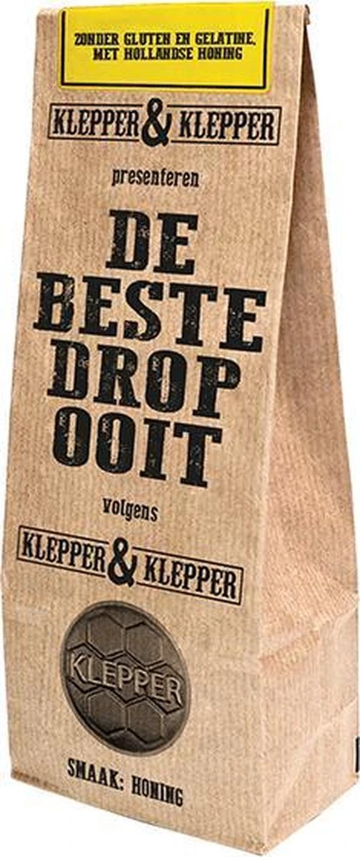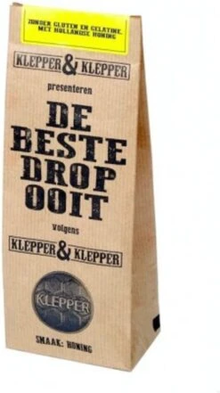 De beste drop ooit volgens vader Klepper & zoon Klepper, en ze kunnen het weten want ze hebben de drop zelf op de markt in Alkmaar getest. Een heerlijke dropsoort met 12% (!) honing uit de Biesbosch. Met liefde, zonder gluten en gelatine.