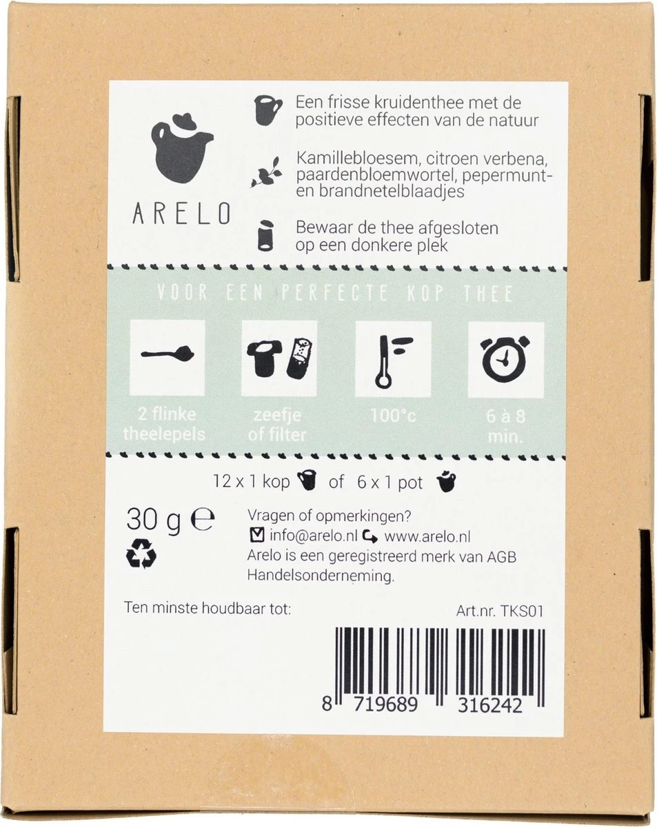 Een pakket met drie soorten theesmaken uit het ARELO assortiment met positieve effecten op de gezondheid.
