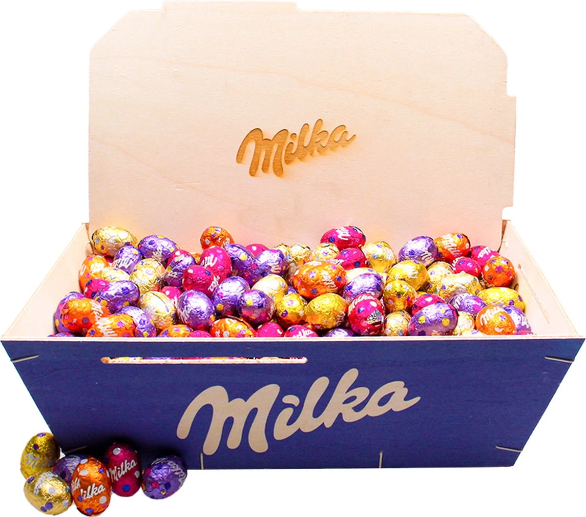 Milka chocolade paaseitjes houten kistje – 2500g