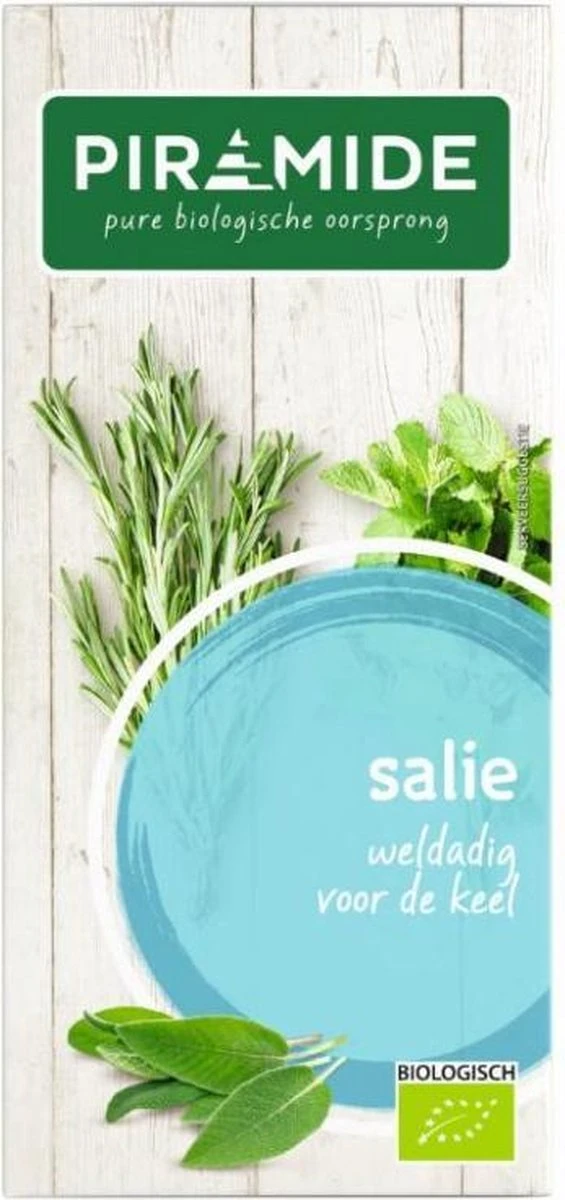 De biologische kruidenthee met Salie van Piramide is van biologische oorsprong is weldadig voor de keel