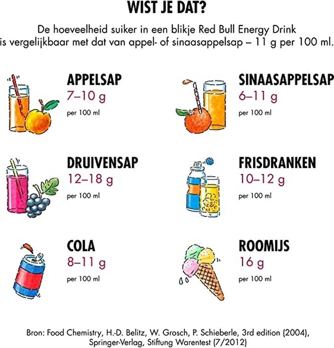 - De hoeveelheid suiker in Red Bull Energy Drink is vergelijkbaar met het suikerniveau in frisdrank: 11 g