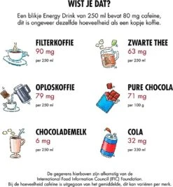 Red BULL VERLEENDE VLOGEL in 1987 was niet alleen de introductie van een geheel nieuw product, maar de geboorte van een geheel nieuwe productcategorie – energiedranken. Red Bull geeft mensen en ideeën vleugels en zet opmerkelijke mijlpalen in sport en cultuur. Consumptiemogelijkheden: de drank is ontwikkeld voor tijden met verhoogde inspanning en wordt wereldwijd gewaardeerd door topsporters, studenten, in sterk veeleisende beroepen en bij lange autoritten. Voor mensen die willen afzien van suiker, maar niet van Red Bull: de suikervrije Red Bull Sugarfree geeft vleugels zonder suiker. Red Bull was wereldwijd het eerste merk in de Energy Drink Categorie, die de wens van de consumenten naar een suikervrije variant herkende en introduceerde Red Bull Sugarfree. Ingrediënten cafeïne: cafeïne was al bekend bij de oude volkeren. Ze wonnen cafeïne uit natuurlijke bronnen zoals thee, koffie, cacaobonen en de kolanoot en waardeerden het stimulerende effect op het menselijk lichaam. Taurine: Taurine is een aminozuur dat in het menselijk lichaam en in de dagelijkse voeding voorkomt. Het is betrokken bij een groot aantal biologische processen.