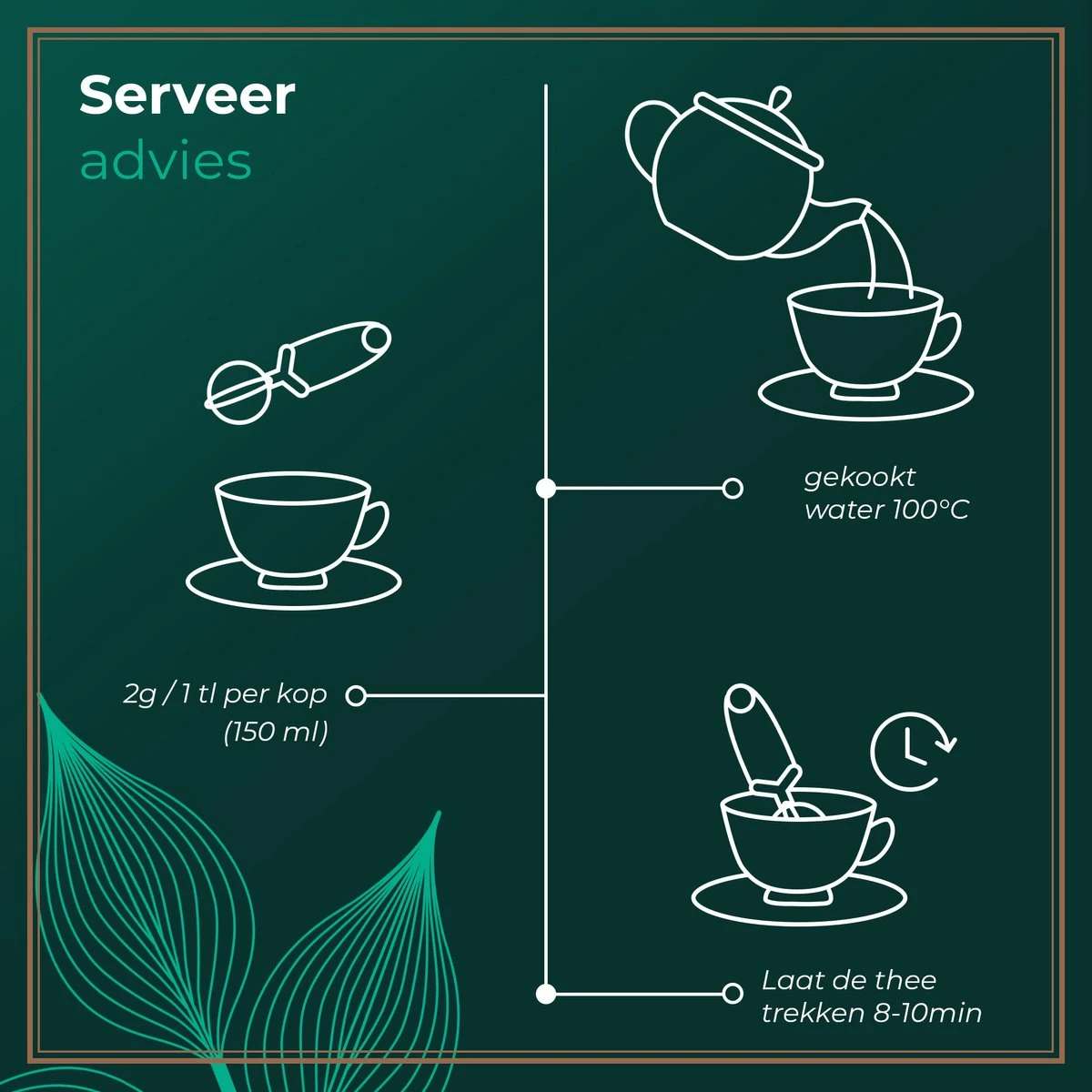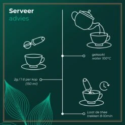 Thee: 2g / 1 tl per kop (150 ml)