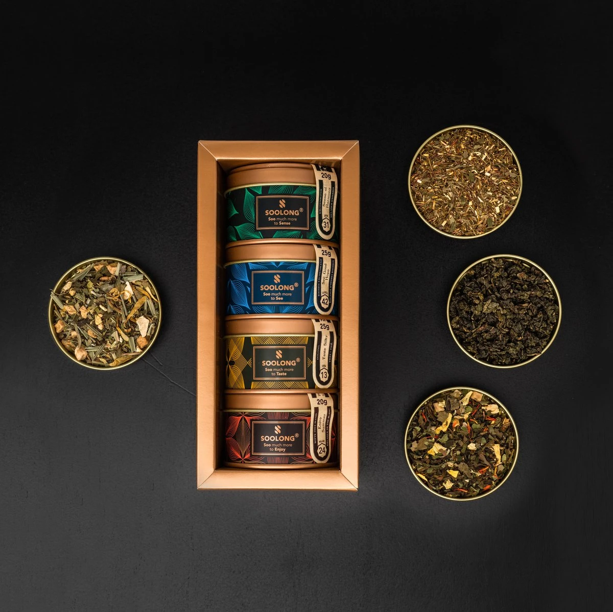 Variërend van een heerlijke kruidenblend die je doet denken aan de Japanse Yuzu vrucht; een Rooibos thee met een zachte afdronk van natuurlijke vanille; Een heerlijke oolong thee met een zijde zachte smaak. En voor wie nog even wil dromen van de zomer, een witte thee blend met een vleugje mango.