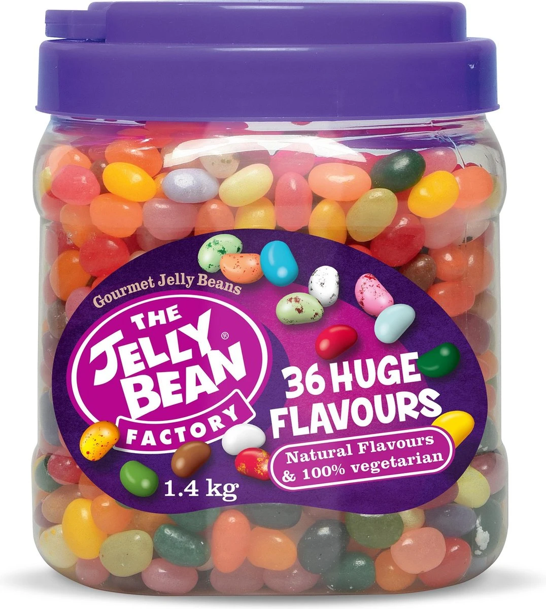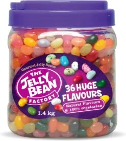 Jelly beans van The Jelly Bean Factory in 36 verschillende en unieke smaken, met een knapperige buitenkant en een heerlijk zachte binnenkant. Nu beschikbaar in een feestelijke plastic verpakking, leuk om cadeau te geven of voor in de voorraadkast. Want zeg nou zelf, er is altijd wel een reden voor een bakje Gourmet Jelly Beans.