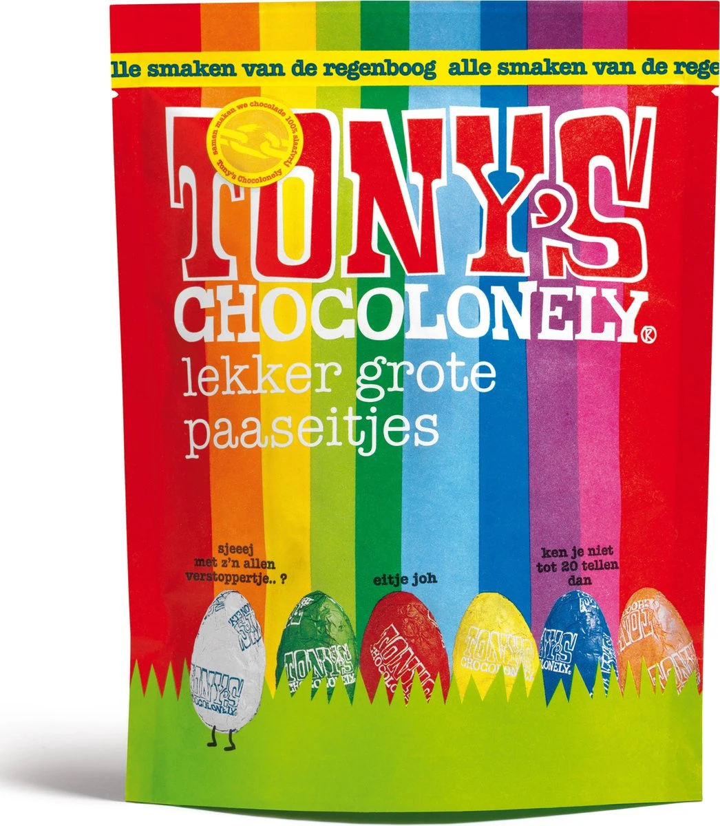 Tony’s paaseieren, met deze paasbeste smaakcombinaties! Een ei-mazing klassieker! Die misstaat niet bij ’t paasontbijt (move over paasstol!). Nog meer blijheid aan ’t paasontbijt! 20 lekkere grote paaseitjes in een mix van 8 smaken, handig in een zakkie.